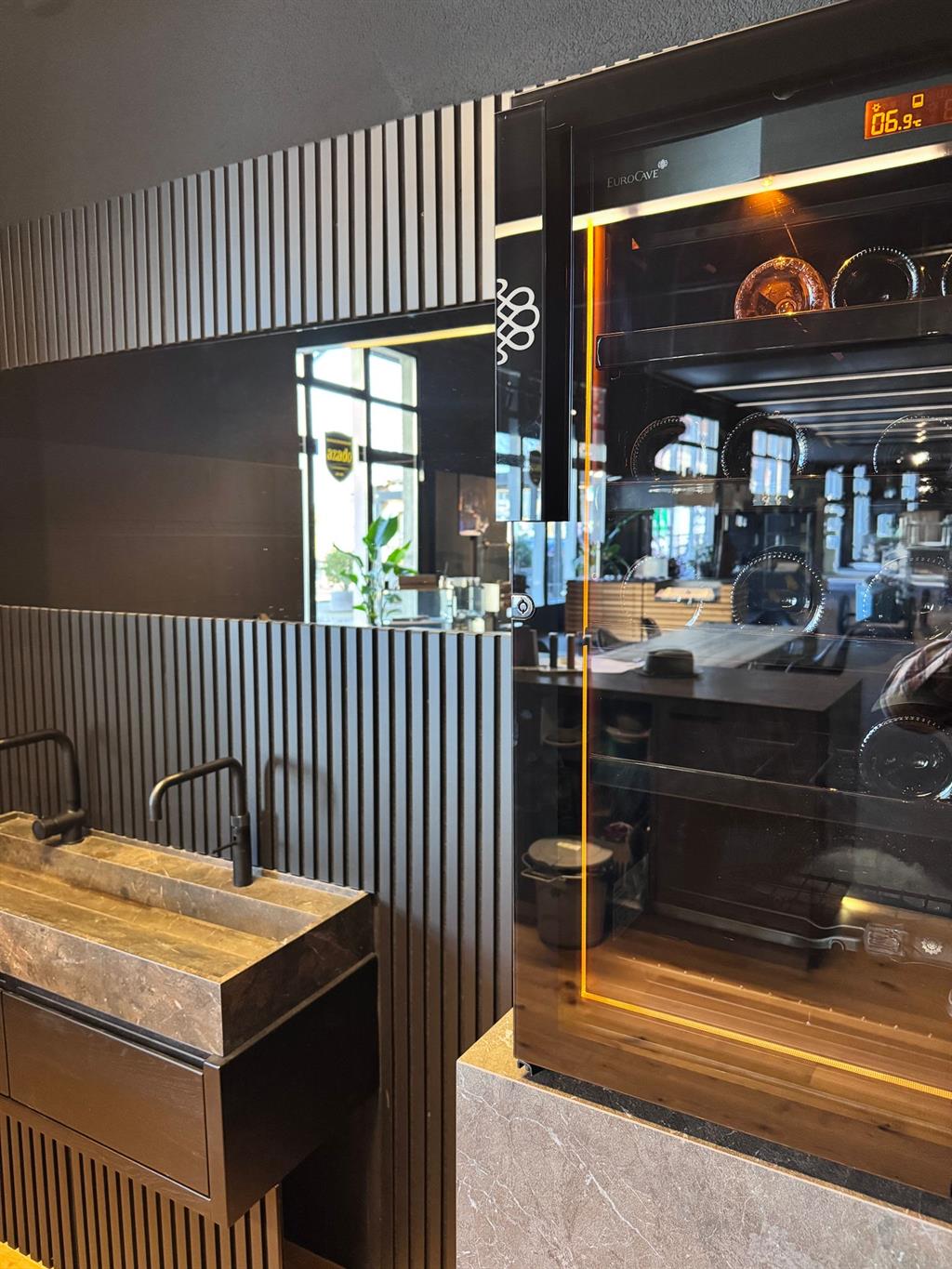 Dans ce contexte, la cave à vin n’est pas un “highlight”, mais un élément intégré à l’aménagement : décideurs, architectes et partenaires passent du temps dans le showroom, prolongent les échanges autour des produits et des concepts, et découvrent comment atmosphère et qualité se répondent. La présentation précise des vins à la bonne température crée une ambiance détendue et cultivée, renforce la confiance et offre un cadre naturel aux rencontres.